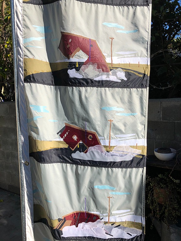 Over the course of two months in the Spring of 2009, I made and installed three different groups of flags. The four 40' flag poles served as a space for a four word phrase. During this time the U.S. and the world at large was recovering from the 2008 financial housing crisis, hence the sayings relate to pessimism, money and hope.